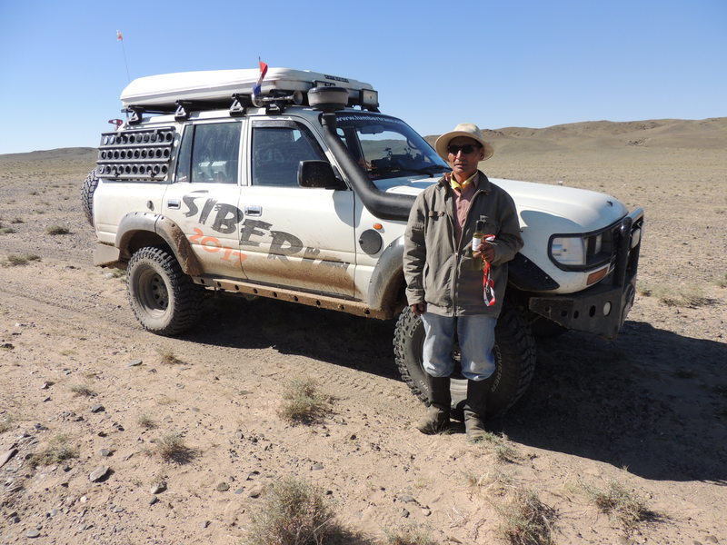 Giorno 22 Oggi è lunedì. Inizia la terza settimana da quando sono partito. Qui si inizia a lavorare alle 9.00. Le banche alle 9.30 sono ancora chiuse. Poi mi spiegano che quel giorno aprono alle 12.00 per motivi di organizzazione interna, o forse non aprono proprio. Mi fermo in un negozio per comperare il pane, l’acqua …e della vodka mongola, ma si tratta proprio di una giornata in cui è proibito vendere gli alcolici. Nonostante tutto riesco a farmi portare di nascosto una bottiglia di vodka fino alla macchina (dicono che ci sono le telecamere e che la polizia monitora tutto). La temperatura sale parecchio, continuo il viaggio. Sbaglio la strada e mi faccio aiutare da un locale al quale regalo alcuni gadget. Nemmeno nei due paesi successivi riesco a cambiare i soldi. Più avanti la “Strega” si ferma per un problema elettrico. Adotto una di quelle tecniche “all’antica” per ripristinare il funzionamento. Mi aiuta anche un motociclista mongolo. Ho raggiunto la steppa mista alla sabbia. Devo fare una deviazione perché è impossibile attraversare le dune. La strada diventa bruttissima, c’è della vegetazione bassa, dossi, il sistema di navigazione è disturbato. Guido fino alle 7 di sera, è difficilissimo l’ultimo tratto, il vento soffia violentemente, mi sono perso una ventina di volte. Ad un certo punto mi ritiro dalla strada, mi cucino una delle ultime salsicce e lavo alcuni panni (finora me li hanno lavati negli alberghi). Oggi ho guidato esclusivamente off road per 210 km. Day 22 Today is Monday. It starts the third week since I left. Here they start working at 9 am. Banks at 9.30 are still closed. Then they explain me that they open at 12 o'clock for reasons of internal organization, or perhaps they do not open. I stop in a shop to buy bread, water ... and Mongolian vodka, but it's the day when it's forbidden to sell alcoholic beverages. In spite of all, they bring me a bottle of vodka up to the car (they say there are cameras and the police watch it all). The temperature rises a lot, I continue the journey. I took the wrong road and I get help from a local whom I give some gadgets. Even in the following two villages I cannot change the money. Later the "Witch" stops for an electrical problem. I adopt one of those "old" techniques to restore operation. A Mongolian motorcyclist also helps me. I reached the steppe mixed with the sand. I have to go around the dunes because it's impossible to cross them. The road becomes very hard and rough, there is low vegetation, the navigation system is disturbed. I drive until 7 pm, the last stretch is very difficult, the wind blows violently, I got lost about twenty times. At a certain point I get away from the road, I cook one of the last sausages and I wash some clothes (till now I have let them wash in the hotels). Today I drove only off road for 210km. |