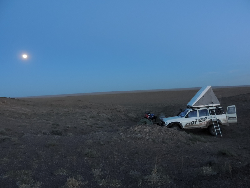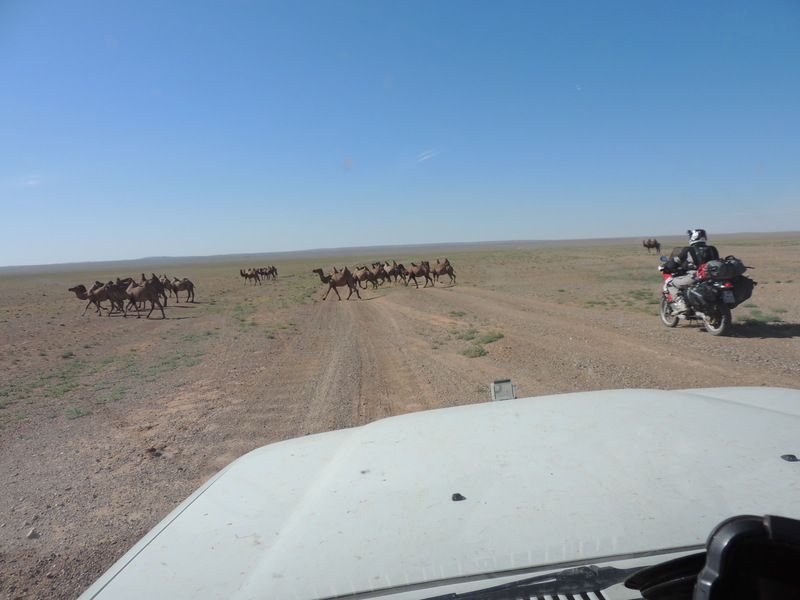 Giorno 27 Faccio il pieno e mi dirigo a nordest verso Saynshand. La strada è leggermente migliore, ma non c’è nessuno. Dopo 100 km arrivo in un piccolo villaggio. Fino a lì ho incontrato 2 macchine. Il villaggio successivo dista 120 km. Non c’è anima viva, nemmeno le yurta. Qua e là qualche cammello. Sbaglio strada, arrivo in un villaggio e intanto faccio il pieno e poi proseguo. Incontro un motociclista. Vedo che sta controllando la sua cartina e il GPS. Ha le targhe tedesche. Ci salutiamo e ci scambiamo qualche domanda su come sta andando. Poi lui mi dice di parlare in croato perché lui è bosniaco. Ci diamo la mano. Lui si chiama Asmir, è originario di Tuzla, però è nato e vive in Germania. Percorriamo insieme una ventina di chilometri e infine ci accampiamo fuori dalla strada. Ceniamo e chiacchieriamo piacevolmente. Asmir ha 38 anni e viaggia molto. Adesso è in viaggio con un Africa Twin. A casa ha anche un Land Rover attrezzato. Gestisce anche una scuola di kick boxing. Viaggia sempre da solo. Scambiamo pareri ed esperienze. Quando andrà in Bosnia, fra due mesi, probabilmente verrà a trovarmi. Quest’inverno ha intenzione di fare il giro del mondo. Gli ho regalato la maglietta del nostro club e l’ho invitato a partecipare ad uno dei nostri incontri. Oggi ho fatto 310 km, tutto off road. Day 27 I buy fuel and head north to Saynshand. The road is slightly better but there is no one. After 100 km I arrive in a small village. Up to there I met 2 cars. The next village is 120 km away. There is no living soul, not even the yurts. Here and there some camels. I took the wrong way, I come to a village and meanwhile I buy fuel and then I go on. I meet a motorcyclist. I see he is checking his map and GPS. He has German license plates. We greet each other and we both ask how it is going. Then he tells me to speak in Croatian because he is Bosnian. We shake hands. His name is Asmir, originally from Tuzla, but he was born and lives in Germany. We travel together about twenty km and in the end we camp out of the way. We have dinner and chat pleasantly. Asmir is 38 years old and travels a lot. He is now traveling with an Africa Twin. At home he has also an equipped Land Rover. He also runs a kickboxing school. He always travels alone. We exchange views and experiences. When he goes to Bosnia in two months, he will probably come to visit me. This winter he is going on trip around the world. I gave him the club T-shirt and invited him to join one of our meetings. Today I did 310 km, all off road.