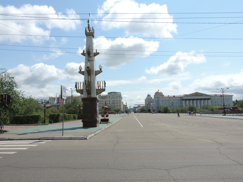 Giorno 35 È domenica, sono le 5 del mattino. Inizia a piovere lentamente. Chiudo velocemente la tenda prima che si bagni. Arrivo molto presto a Borzya, piccola cittadina lungo la strada principale. Dormono tutti ancora. Si tratta di una tipica cittadina sovietica, parecchie case ed edifici sono trascurati. Qui a Borzy ho memorizzata il punto più ad est: S 20.24.1896 I 116.30.9981 Continua a piovere lungo il tragitto. Volevo fermarmi a visitare un centro buddista, ma pioveva troppo e mancava la segnaletica. Verso le 13.00 sono alle porte di Cita. Il tempo ora è bellissimo, sereno, ma afoso. Mi fermo in un albergo in centro dopo aver fatto delle compere. Consegno i vestiti a lavare. Mi danno una stanza al 4. piano senza ascensore. Sempre meglio di qualche giorno fa quando ero al 5 piano senza ascensore. Questa parte della Russia è alta 600 – 700 m. Oggi ho viaggiato 420 km. Domani mattina devo andare in banca e ricaricare il telefono, poi mi dirigerò verso Ulan Ude.