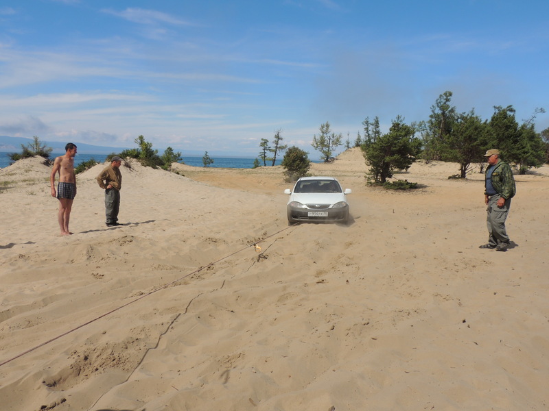 Day 39 In the morning I do some repairing and some shopping. Then I buy the ticket for the National Park: for me and for the car I spend 5 euros. This part of the island deserves to be visited, there is steppe, wood, stone and soil. There are off road roads that I would call normal and there is a 4km stretch that is almost hard. The UAZ pass with tourists on board. For other vehicles these roads are difficult to cross. On the north of the island there are some beautiful cliffs and a sacred place for the shamans. I think I have reached the most north point during this trip: N 53.24.2745 E 107.47.0650 This was one of the goals of my trip. I've reached almost all planned targets, except Yakuti. Tomorrow I will return to Irkutsk and then head to the Urals. The most important goal now is to return home. Today I take it calmly: I run slowly, I take photos, I stop to have a snack, I admire the landscape ... but somewhere within the sand area two cars are asking for help. I pull them with the winch. There are also the National Park Rangers wearing the uniform and sandals on the foot. I proceed to Kuzir and reach a beach. I supply water. Then I find another vehicle sanded in the sand. Today I worked hard. I returned back to the family where I slept last night. Olga opens the shower. The day was really interesting. Today I drove 90 km. |