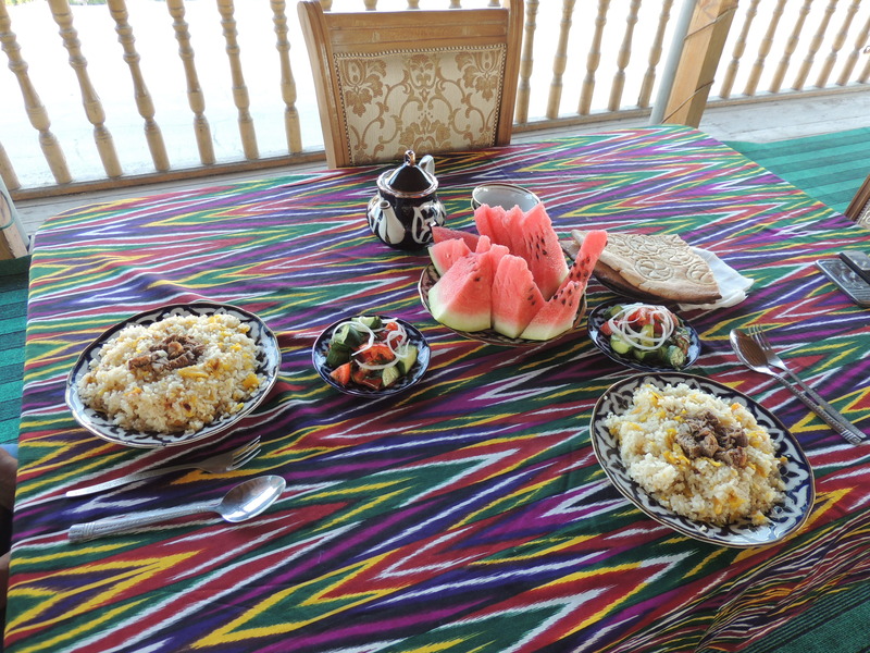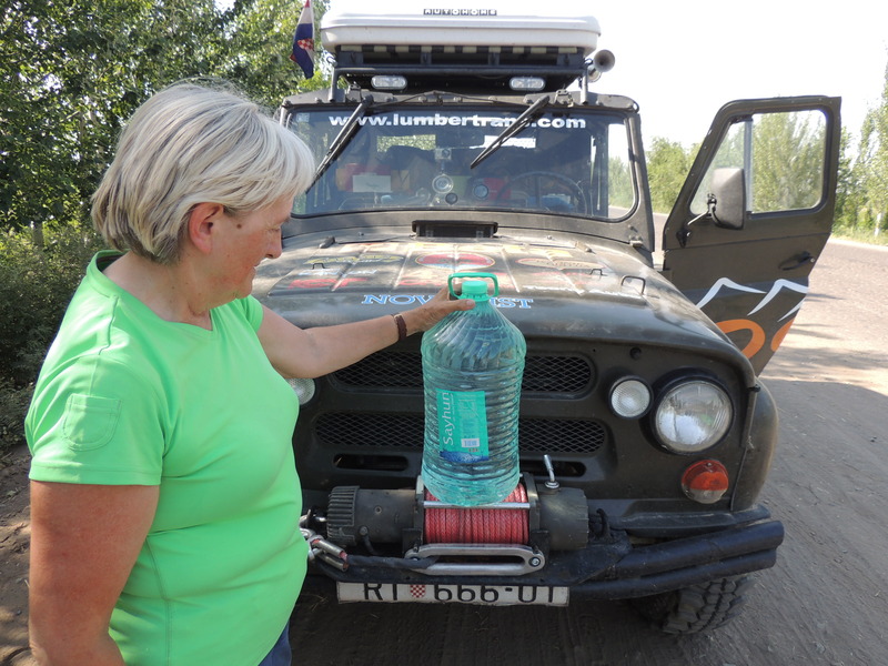 Pamir 2014-11.danUjutro kreæemo za Moynak,gradiæ na nekadašnjoj obali Aralskog mora,sada daleko od njega više od 50 km,zato jer su Sovjeti od 60 tih do 90 ih godina isušili ogromne kolièine tog mora i preokrenuli ih za navodnjavanja polja pamuka.Tu se nalazi i groblje ribarskih brodova,koji su onda svi bili ostali bez posla. U povratku punimo benzin u jednoj lokalnoj konobi,pa gas prema Khivi,starom poznatom gradu na nekadašnjem putu svile.Više o tome možete proèitati na Wikipedii.Grad je pod zaštitom Unesco-a. U svim krajevima do sada,gdje smo prolazili,troši se flaširana voda za piæe,tako imaju pakovanja i od 10 pa i 12 litara kao na slici. Danas je temperatura dosegla paklenih +44C,u Uazu je temperatura vode konstantno oko 90-95 C (inaèe 75-max 80 C).Nas dvoje danas smo popili 9 litara vode. Na jednoj od slika vidi se puno novèanica,cijela hrpa toga na sjedištu vrijedi oko cca 53 Usdolara. Na ostalim slikama vidi se i veèera u Hotelu "Alibek",tipièno uzbeèko jelo plov (riža,meso i dodaci,vrlo ukusno)i sa svakim obrokom pije se èaj.