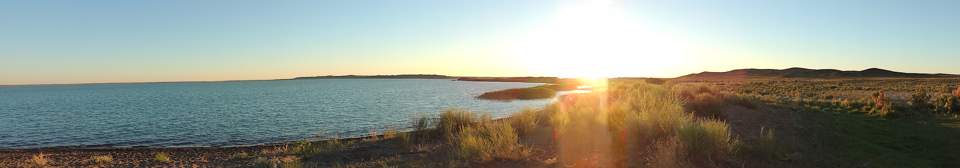 30th day We cross Almaty (Alma Atu), it is a true metropolis. We do not stop, we travel along the ring road to save time. Out from the city, on the outskirts, we stop by a tire service to move the front tires behind and rear tires in front. Front tires wear out faster. With the same tires we crossed the Caucasus last year. Probably when we get home they'll have to be replaced. For the moment, they are still good. After a while we are out of the town, the odometer shows us that we have exceeded 10,000 km since we left. The journey is quite nice, there is little traffic, mostly trucks and a few cars. The distances are considerable and is hot again, + 38 ° C, that's not so bad. In Almaty we fill in also the spare tank with petrol as recommended by the Belgian from Karakol. From here on, the petrol stations are very few (one every 100-150 km). No more worries for a moment. Towards evening we are passing along the lake Balqas, it's huge, it seems a sea. Before nightfall we leave the main road and drive for 10 km to get closer to the shore. There is no one, only grazing cows. We'll camp here. Today we traveled 585 km. We have to cross the steppe in the coming days, we hope that the temperature will not increase. |