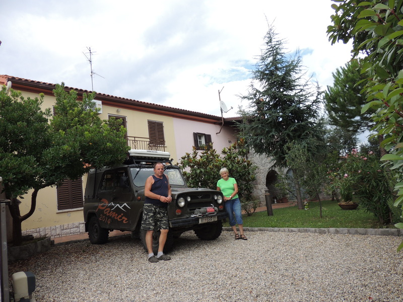47° giorno, ultimo giorno Lasciamo Martin Breg avvolto nella nebbia. Attraversiamo la circonvallazione di Zagabria e all'imbocco dell'autostrada usciamo e prendiamo la strada "vecchia" Zagabria - Karlovac - Fiume. Non abbiamo fretta, si viaggia bene. C'è pochissimo traffico. Alle 12.00 arriviamo a Mattuglie, salutiamo velocemente i parenti e i colleghi di lavoro e, per onorare la tradizione, andiamo a mangiare una "pljeskavica" nella trattoria "Fiorin". Alle 14.30 arriviamo a casa dopo 47 giorni e 17 809 km percorsi alla temperatura tra i + 4°C e i + 52°C e tra i 0 e i 4655 m slm. E' sufficiente per questa volta. Grazie a tutti quelli che ci hanno seguito e sostenuto durante questo viaggio. Uaz overland team . . . 47th day, the last day We leave Martin Breg covered in mist. We cross the ring road of Zagreb and instead of taking the motorway we take the "old" road Zagreb - Karlovac - Rijeka. We do not hurry, the journey is pleasent. There is very little traffic. At 12.00 we arrive to Matulji, we quickly say hello to relatives and colleagues at work, and we eat a "pljeskavica" in the restaurant "Fiorin." At 14.30 we arrive home after 47 days and 17 809 km we have travelled at a temperature between +4 ° C and + 52 ° C and between 0 and 4655 m above sea level. Quite enough for this time. Thanks to all of you who have followed and supported us during this trip. Uaz overland team