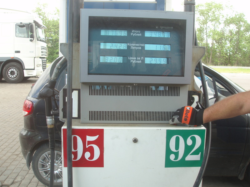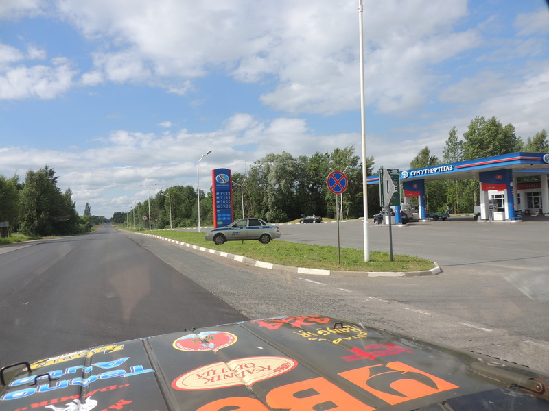 6. day We leave the camp site and head to the Russian border, which is approx 70 km from here. It's cold, at night it rained and was windy, now the weather improves. At the Latvian border there is the shift change, we wait half an hour, then another half hour for document control (not for the car and the luggage). We ask the officer why do they check so much and he said, very politely, that we are leaving the Schengen area and that everything must be done regularly. We already know the control procedure at the Russian border, the temporary importation of the equipment and goods, visas and so on. They are very correct, a young lady officer who is very professional, helps us to fill in the forms. However we lose an hour and a half. This part of Russia is plain and there are some low hills. We drive the main streets. We're headed to Staraya Russa, there should be a camping, but we do not find it. Gasoline is also cheap in Russia: 1 liter of 92 Mb is 4 Kn (0,53 Euro) and 95 Mb costs a few cents more. Today we covered 597 km. Your team UAZ P.S.