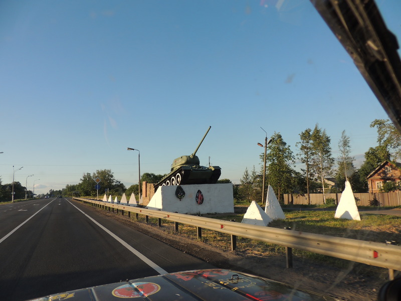 6. giorno Lasciamo il campeggio e ci dirigiamo verso il confine russo che dista ca. 70 km da qui. Fa freddo, di notte ha piovuto e c'era vento, ora si sta rasserenando. Al confino lettone c'è il cambio di turno, aspettiamo mezz'ora, poi un'altra mezz'ora per il controllo dei documenti (la macchina e i bagagli no). Chiediamo all'ufficiale il motivo di questo controllo approfondito e lui ci spiega, molto gentilmente, che stiamo lasciando l'area Schengen e che tutto deve essere fatto regolarmente. Al confine russo conosciamo già la procedura di controllo, d'importazione temporanea della macchina e dei beni, visti e via dicendo. Sono molto corretti, una giovane ufficiale, molto professionale, ci aiuta a compilare i formulari. Tuttavia perdiamo un'ora e mezza. Per ringraziarla le abbiamo regalato un bellissimo catalogo della Riviera di Abbazia redatto in russo. Ogni anno chiediamo all'ente turistico di Abbazia e a quello di Mattuglie il materiale promozionale, è sempre molto apprezzato. In questa parte della Russia la pianura si alterna con delle colline basse. Percorriamo le strade principali. Siamo diretti a Staraya Russa, dovrebbe esserci il campeggio, ma non lo troviamo. Passiamo per Veliky Novogorod cominciando a pensare dove pernottare, poi troviamo una stajanka, parcheggio custodito per i camion. Le condizioni igieniche sono pessime, ma almeno è sorvegliato ed è economico, 15 kn (ca. 2 euro). In Russia costa poco anche la benzina: 1 litro di Mb 92 viene 4 Kn (0,53 Euro) e Mb 95 costa qualche centesimo di più. Su una foto vedete il modello dell'auto di polizia di dimensioni reali: è un vecchio trucco, ma funziona! I Russi amano i monumenti e le armi, potete vederlo su una delle foto. Oggi abbiamo percorso 597 km. Il vostro UAZ team P.S. Sto scrivendo alla sera del nono giorno, prima non riuscivamo a connetterci ad Internet.