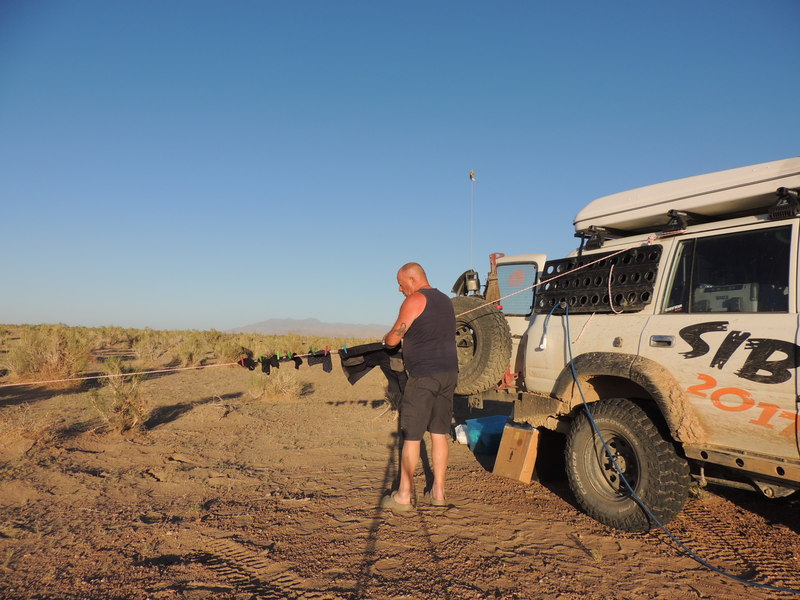 Giorno 22 Oggi è lunedì. Inizia la terza settimana da quando sono partito. Qui si inizia a lavorare alle 9.00. Le banche alle 9.30 sono ancora chiuse. Poi mi spiegano che quel giorno aprono alle 12.00 per motivi di organizzazione interna, o forse non aprono proprio. Mi fermo in un negozio per comperare il pane, l’acqua …e della vodka mongola, ma si tratta proprio di una giornata in cui è proibito vendere gli alcolici. Nonostante tutto riesco a farmi portare di nascosto una bottiglia di vodka fino alla macchina (dicono che ci sono le telecamere e che la polizia monitora tutto). La temperatura sale parecchio, continuo il viaggio. Sbaglio la strada e mi faccio aiutare da un locale al quale regalo alcuni gadget. Nemmeno nei due paesi successivi riesco a cambiare i soldi. Più avanti la “Strega” si ferma per un problema elettrico. Adotto una di quelle tecniche “all’antica” per ripristinare il funzionamento. Mi aiuta anche un motociclista mongolo. Ho raggiunto la steppa mista alla sabbia. Devo fare una deviazione perché è impossibile attraversare le dune. La strada diventa bruttissima, c’è della vegetazione bassa, dossi, il sistema di navigazione è disturbato. Guido fino alle 7 di sera, è difficilissimo l’ultimo tratto, il vento soffia violentemente, mi sono perso una ventina di volte. Ad un certo punto mi ritiro dalla strada, mi cucino una delle ultime salsicce e lavo alcuni panni (finora me li hanno lavati negli alberghi). Oggi ho guidato esclusivamente off road per 210 km. Day 22 Today is Monday. It starts the third week since I left. Here they start working at 9 am. Banks at 9.30 are still closed. Then they explain me that they open at 12 o'clock for reasons of internal organization, or perhaps they do not open. I stop in a shop to buy bread, water ... and Mongolian vodka, but it's the day when it's forbidden to sell alcoholic beverages. In spite of all, they bring me a bottle of vodka up to the car (they say there are cameras and the police watch it all). The temperature rises a lot, I continue the journey. I took the wrong road and I get help from a local whom I give some gadgets. Even in the following two villages I cannot change the money. Later the "Witch" stops for an electrical problem. I adopt one of those "old" techniques to restore operation. A Mongolian motorcyclist also helps me. I reached the steppe mixed with the sand. I have to go around the dunes because it's impossible to cross them. The road becomes very hard and rough, there is low vegetation, the navigation system is disturbed. I drive until 7 pm, the last stretch is very difficult, the wind blows violently, I got lost about twenty times. At a certain point I get away from the road, I cook one of the last sausages and I wash some clothes (till now I have let them wash in the hotels). Today I drove only off road for 210km. |
