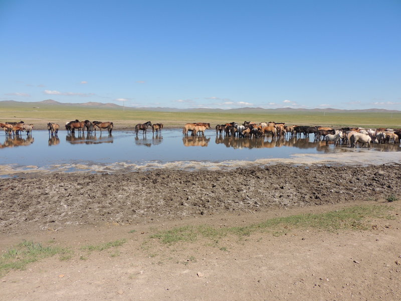 Giorno 32 La giornata inizia con una delusione. Il direttore non ha tradotto il mio documento perché non sapeva??? Contemporaneamente non si trovavano alcuni indumenti che ho fatto lavare. Poco dopo li hanno trovati, erano lavati. Di fronte all’albergo si trova un edificio buddista. Era tutto chiuso e non ho potuto chiedere informazioni a nessuno. Il direttore dell’albergo sapeva soltanto che era qualcosa inerente al Budda!! Mi dirigo verso Dedal, un villaggio verso il confine con la Russia, il paese natale di Gengis Kan. Secondo il direttore dell’albergo, essendo Dedal un centro turistico, avrei dovuto trovare lì qualcuno in grado di tradurre il mio documento. Certamente! La strada è tutta off road, in alcuni punti un po’ migliore. C’è anche traffico, anche troppo; ogni 10 minuti incontro qualche veicolo, evidentemente sono diretto verso un luogo famoso! Arrivo a Dadal nel tardo pomeriggio e mi sistemo in un campeggio composto da gere (jurta) e da bungalow. Si tratta di unità che possono ospitare più persone. Io dormo nella mia tenda. Il titolare parla un po’ di russo (100 parole). Guida un Hammer H2. Allaccio la “Strega” alla corrente elettrica per il frigorifero. Alla sera il campeggio è pieno di ospiti, tutti mongoli, non c’è nessun straniero, nemmeno nel villaggio. Esattamente come era descritto nella guida inglese: qui gli stranieri non vengono. Il titolare calcola tutto nel conto: il campeggio, la corrente, Internet (wi-fi non c’è neanche nel raggio di chilometri). Su 50 ospiti ci sono due WC e due docce. Per fortuna sono abituato a tutto, quindi non mi faccio problemi. Tutti i presenti erano meravigliati a vedere la mia tenda sul tetto, la doccia personale, le pentole e tutta l’attrezzatura mentre preparavo la cena. Tutto sommato non è stata una brutta giornata. Ho percorso 270 km, tutto off road. Un caro saluto a tutti voi.