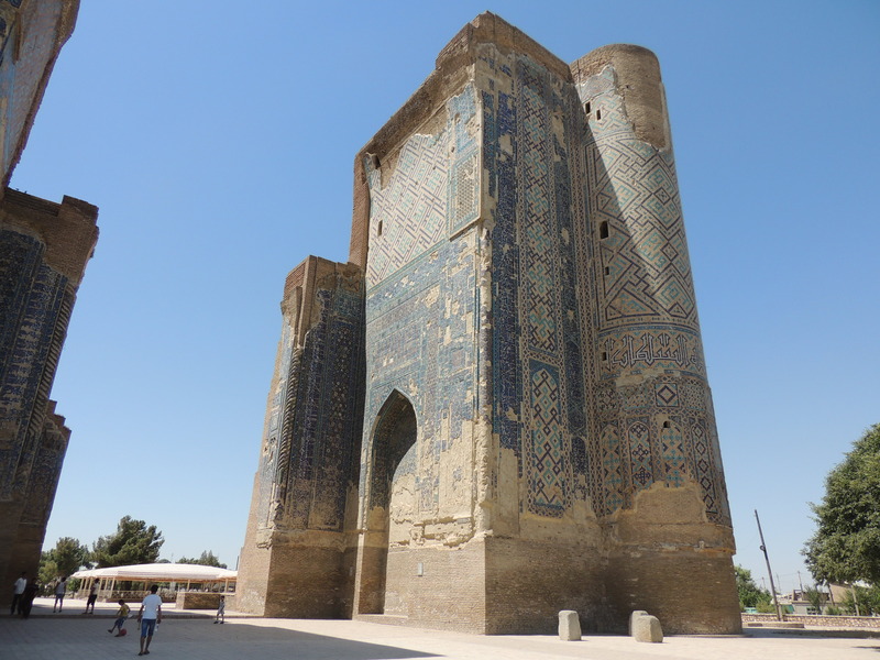 Partiamo di mattina verso Shakhrisabz una cittadina storica 80 km a sud da Samarcanda. Finalmente attraversiamo una montagna, superiamo il passo a 1700 m s.l.m. E' la prima altura che vediamo dall'inizio del viaggio. Alla partenza la temperatura era piacevole, ma già alle 10 quando eravamo sul passo il termometro segnava +35°C e alle 11 a Shakhrisabz + 40°C. Abbiamo fatto una breve visita ai monumenti della città e poi ci siamo ricoverati in albergo. Dobbiamo riposare per poter riprendere il viaggio domani. Alle 16.00 la temperatura è salita a +50°C. . . . 17th Day We left in the morning towards Shakhrisabz, a historic town 80 km south from Samarkand. We crossed a mountain at 1700 m above sea level. It 's the first hill from the beginning of the journey. At departure the temperature was pleasant, but at 10 a.m. when we were on the pass it rose to +35 ° C and at 11 a.m. in Shakhrisabz to + 40 ° C. We did a quick tour of the city and then we went to the hotel . We need a rest . Tomorrow we continue the journey. At 16.00 the temperature had risen to 50 ° C.