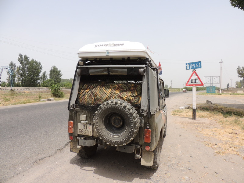 18th Day Today we left at 4.30. It was still night. At about 5 begins the dawn, the temperature is pleasant, + 25 ° C. We head to the south, we go to Tajikistan. We stopped at about 6:30 to make breakfast, have already + 30 ° C, rising to no more than 35 ° C during the day. A real relief. In a small country we buy gasoline and while we're at the petrol station from somewhere arrives a little dog who bites my left ankle, fortunately the bite is only superficial. Along the way we pass through several police checkpoints at which you must stop. Uzbekistan is very rich in gas, almost all cars are powered by gas and all distributors offer both methane and propane. The scenery is similar to northern Iran. Even today we got up to 1400 meters. The journey so it was not boring. At 12, we take the road M41 Pamir, Pamir Highway or Pamirski trakt in Russian. We'll still talk about it. At the Uzbek border the outgoing controlis even more rigorous then the incoming one. It 's very difficult to understand why, nowadays. However, we can cross the border in half an hour which is very fast. The control on the part of Tajikistan is faster even if carried out by following certain procedures. At the control they were attracted more by our origin, and not very interested in our luggages and car. In less than an hour we overcome even this border. There are works in progress along the road to Dushanbe (capital of Tajikistan), which causes a lot of troubles: construction sites, mud, dust, somebody is driving on the left, somebody on the right, somebody stops, theydrive fast and overtake all. We stop again to buy petrol. Here is not a problem to get it. A liter costs 0.66 Euros. We also wash the radiator of the UAZ to free it from mud, insects and other impurities accumulated during the 6500km we've run so far. Here, too, we meet lots of police patrols. The controls are frequent, both outside and in the towns. They stopped us immediately after refueling, with the radar. We are one of the slower vehicles, so they just say hello and let us go. In Dushanbe we found a hotel, a bit expensive to be honest, but there is a closed parking that gives us some confidence for the night. It's already almost dark and we decide to stop. Even today we have traveled 405 km. |