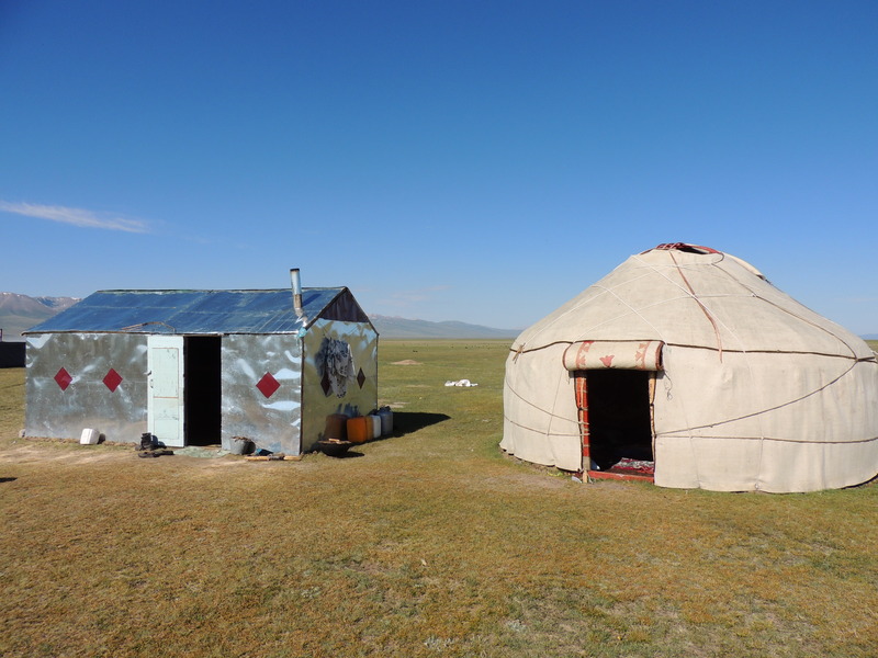 26° giorno E' un esperienza particolare svegliarsi a quest'altitudine alle 5 di mattina. Vi regna la pace, non c'è nessuno. Sono + 4,8°C. Incontriamo soltanto un Danese che fa trekking mattutino. E'ospite in una yurta per 12 giorni tramite un'agenzia turistica. Si muovono anche gli animali verso i pascoli, conoscono la loro strada, è tutto libero, non ci sono recinti. Ci si avvicinano anche 2 pastori. Ci capiamo un po' in russo e un po' a motti. Loro sicuramente non si ammaleranno mai di stress. Sarebbe bello rimanere qui, però decidiamo di partire. Attraversando un altro passo raggiungiamo il paese di Naryn verso mezzogiorno. All'ingresso nel paese incontriamo la polizia. Finora ne abbiamo vista relativamente poca rispetto al Tagikistan e all'Uzbekistan e non abbiamo mai avuto problemi. Eccezione ... ci fanno pagare 520 som (ca. 7,5 euro) perché non avevamo acceso i fari. Ce lo spiegano in un buon inglese. Paghiamo e chiediamo la ricevuta, secondo loro è troppo complicato scriverla ... meglio stare zitti e ripartire. Continuiamo verso il caravanserragliodi Tash Rabat, è uno dei più conosciuti dal periodo di Marco Polo ed è anche conservato abbastanza bene. Per raggiungerlo percorriamo130 km di una bella strada larga che porta sul passo Torugart e al confine con la Cina. Tash Rabat dista 15 km dalla strada principale, lo visitiamo e scattiamo delle foto. Volevamo fermarci qui nel canyon per la notte, ma già alle 3 di pomeriggio la temperatura è di soli + 13°C e soffia un vento molto freddo. Riprendiamo quindi la strada principale e dopo 50 km ca. verso Nariyn ci fermiamo per la notte vicino ad un piccolo fiume. . . . 26th Day It 's a special experience to wake up at 5 in the morning at this altitude. It's so peaceful, there is no one here. The temperature is +4.8° C. We meet only a Danish trekker. He stays in a yurt for 12 days. He arrived with a travel agency. The animals also move to the pastures, they know their way, it's all open, there are no fences. Two pastors come to us. We understand each other a bit in Russian and a little by hands. They definitely do not ever get sick of stress. It would be nice to stay here, but we decided to leave. Crossing another pass we reach the town of Naryn around noon. Here we meet the police. In Kyrgyzstan we have seen relatively little police compared toTajikistan and Uzbekistan, and we never had any problems. Except this time ... we must pay 520 som (about 7.5 euro) because we had not turned on the headlights. They explain it in good English. We pay and ask for a receipt, according to them it is too complicated to write it... better shut up and leave. We continue towards the caravanserai of Tash Rabat, which is one of the most well-known from the time of Marco Polo and is also quite well preserved. To reach it we drive for 130 km along a beautiful wide road that leads to the pass Torugart and to the border with China.Tash Rabat is located 15 km from the main road, we visit it and take photos. We wanted to overnight here in the canyon, but already at 3.00 o'clock in the afternoon the temperature is +13° C and it blows a very cold wind . So we take the main road again and after about 50 km towards Nariyn we stop for the night near a small river.