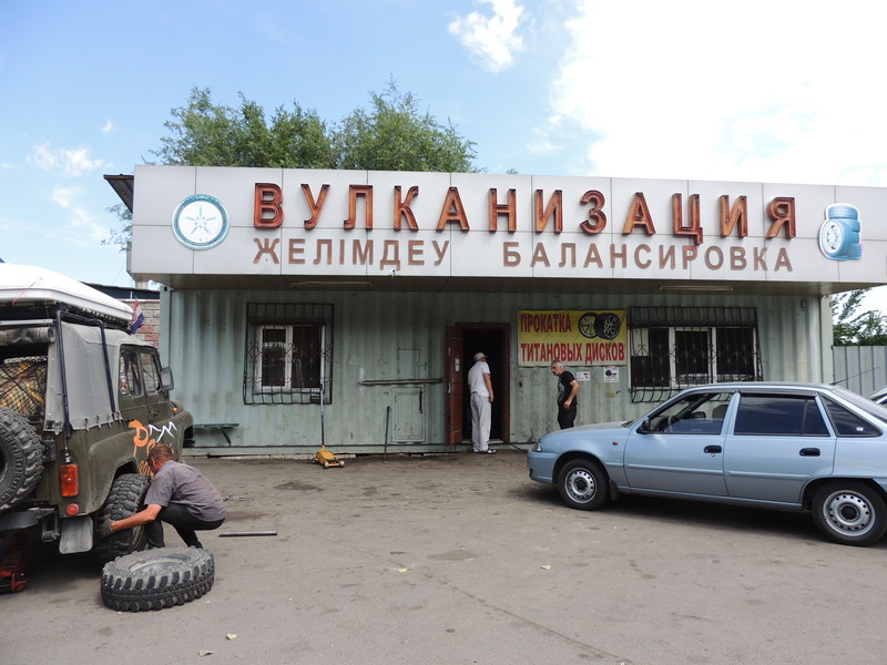 Pamir 2014-30.danProlazimo uskoro kroz Almaty (Alma Atu),ovo je stvarno pravi velegrad.Ne zaustavljamo se,samo vozimo obilaznicom kroz grad,da odmaknemo danas èim dalje moguæe.Negdje na krajnjoj periferiji,stajemo kod vulkanizera,da nam prebaci prednje gume otraga,a zadnje naprijed.Inaèe se uvijek prednje više troše,pa da nakon toliko tisuæa km bar budu jednako istrošene tj. potrošene).Te iste gume imaju veæ i lanjsku turu po Kavkazu pa ne bilo za èudit se da kad stignemo doma ih bacimo.Za sad se još dobro drže. Uskoro potpuno izlazimo na otvorenu cestu i brojèanik kilometara je pokazao da smo na ovom putovanju prešli 10 000.kilometar. Napredujemo dosta ,prometa ovom cestom je malo,veæinom nešto kamiona i malo osobnih vozila.Udaljenosti su velike,dosta je i prigrijalo,do + 38 C,ali da se ,ovo nije strašno.Po savjetu Belgijanca iz Karakola,na periferiji Almatyja napunili smo benzin sa dodatnom rezervom,naime na slijedeæim dijelovima ceste pumpe su vrlo rijetke (i po 100 - 150 km ih nema),pa bar s time ne treba imati problem. Predveèer vozimo uz Balško jezero,ogromno,(i ovo kao more) i negdje pred mrak,skreæemo cca 10 km sa glavne ceste vozimo do dijela obale gdje nema nikoga (osim krava na paši) i tu se ulogorujemo. Danas smo prošli 585 km.Ako ovih dana bude još toplije,bit æe "veselo"proæi ove stepe po toj žezi. . . . 30° giorno Passiamo per Almaty (Alma Atu), è una vera metropoli. Non ci fermiamo, prendiamo la circonvallazione per avvantaggiarci con il tempo. All'uscita dalla città, in periferia, ci fermiamo da un gommista per far montare le gomme anteriori dietro e quelle posteriori davanti. Le gomme anteriori si consumano più velocemente. Così si consumeranno uniformemente. Con le stesse gomme abbiamo attraversato il Caucaso l'anno scorso. E' probabile che quando torniamo a casa siano da sostituire. Per adesso sono ancora buone. Dopo un po' siamo fuori dalla città, il contachilometri ci indica che abbiamo superato i 10.000 km da quando siamo partiti. Si viaggia abbastanza bene, c'è poco traffico, perlopiù camion e qualche auto. Le distanze sono notevoli e fa di nuovo caldo, + 38°C, ma non è grave. Ad Almaty abbiamo riempito di benzina anche il serbatoio di riserva come ci ha consigliato il Belga di Karakol. Da qui in poi i distributori sono molto pochi (uno ogni 100-150 km). Ora siamo senza pensiero. Verso sera stiamo transitando lungo il lago Balqas, è enorme, sembra un mare. Prima che cali la notte deviamo 10 km dalla strada principale e ci avviciniamo alla riva. Non c'è nessuno, solo le mucche al pascolo. Facciamo il campo. Oggi abbiamo percorso 585 km. Dobbiamo attraversare la steppa nei prossimi giorni, speriamo che la temperatura non aumenti. . . .