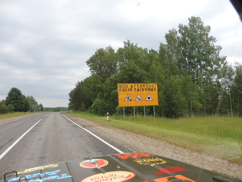 4. Day Today we left at 6:30. Last night it rained a bit ', it is cloudy, sometimes it rains again, it stops in the afternoon. The temperature is pleasant, 20 ° C. We pass the Polish-Lithuanian border that no longer exists and we drive through Lithuania via Kaunas. The roads are great, the scenery is beautiful. We note that nothing remembers the Soviet past of this country. The official currency is the euro, the price of gasoline is around 1.30 euro. The villages and cities are well kept. There are many trucks in transit. In a few hours we reach the Lithuanian-Latvian border (although it doesn't exist anymore), we head to Daugavpils and then to the border with Russia. The standard of living in Latvia is lower in comparison to Lithuania, the roads are not so well maintained (despite the works of remake), you can still see traces of the USSR, although much less than in Georgia, Armenia, Tajikistan etc.. The price of gasoline is the same like in Poland and Lithuania. We reach a campsite early enough to prepare the passage to Russia scheduled for tomorrow. But we note that visas to enter Russia are valid only from Monday and not tomorrow! So tomorrow we will do a tour in Latvia. I was very happy today to drive on the macadam road the last 20 km! Your Uaz team! PS. In the photos you will notice "how easy it is" to understand the Lithuanian language and you'll see the sunset on a lake.