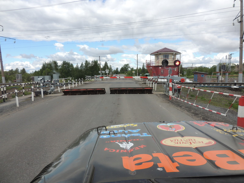 9. giorno Proseguiamo verso nord. Dopo un certo tempo lasciamo la strada principale e scendiamo a Kem, una cittadina sul mar Bianco. Anche qui rimaniamo delusi. Kem è conosciuta quale punto di partenza per le gite alle isole Solovetsky dove sorgono i lager del periodo di Stalin. In fondo al paese una signora insiste per farci pagare l'ingresso nel parcheggio custodito, non riusciamo a prendere la parola e a spiegarle che non andiamo a visitare le isole, ma che siamo venuti fin qui e vogliamo tornare indietro. Raggiungiamo un passaggio a livello; le composizioni dei treni sono molto lunghe; alla prossimità delle sbarre la strada è dotata di sistemi di bloccaggio a pavimento come potete vedere su una foto. Continuiamo il nostro viaggio fermandoci solo per il rifornimento più volte. Si susseguono boschi, paludi, lavori in corso.... Alla sera arriviamo a Olenegorsk dopo aver percorso 631 km. Per la prima volta dopo la partenza soggiorniamo in un albergo (gastinica in russo). Qui troviamo il wi fi e qualche altra comodità. Ormai siamo entrati nella zona del sole di mezzanotte: è giorno anche di notte. Domani continuiamo Uaz team 9. day We continue to the north. After a while we leave the main road and we go down to Kem, a town on the coast of the White Sea. Here, too, we are disappointed. Kem is known as the starting point for trips to the islands Solovetsky where were the camps of the Stalin period. At the end of the town a lady insists on charging us the entrance into the secure car park, we can not take the floor and explain that we do not go to visit the islands, but we have come this far and we want to go back. We reach a level crossing; the compositions of the trains are very long; in the proximity of the bars the road is equipped with locking systems at the floor as you can see on a photo. We continue our journey, stopping only to refuel several times. There are forests, swamps, work in progress .... In the evening we get to Olenegorsk after covering 631 km. For the first time afterleaving home we stay in a hotel (gastinica in Russian). Here we find the wi fi and some other amenities. Now we have entered the zone of the midnight sun, it is day even at night. Tomorrow we continue UAZ Team |